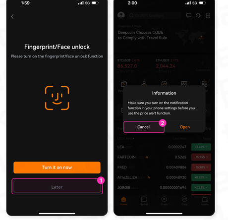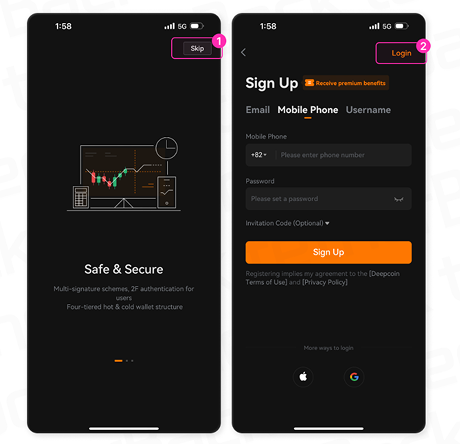 – Deepcoin 앱 선택