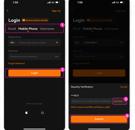 • ③ [Get Code]를 눌러 가입 수단으로 (2차 인증 코드/이메일 코드)를 발송한 뒤, 받으신 인증코드를 입력해 주세요.