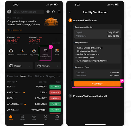 • 메뉴 이름은 앱 버전에 따라 KYC, Identity, Verification 등으로 조금씩 다를 수 있습니다.