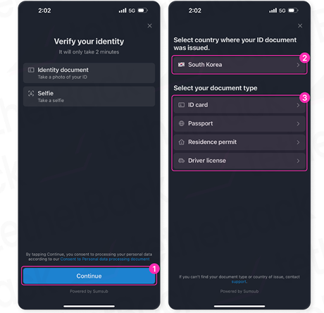 8단계 – KYC 준비 & 신분증 종류 선택
