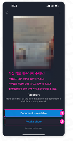 – 글씨와 얼굴이 또렷하게 보이면 [Document is readable] 를 누릅니다.