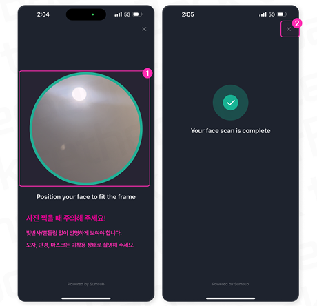 • ③ 얼굴 인식이 완료되면 자동으로 KYC 심사가 자동으로 진행됩니다.
